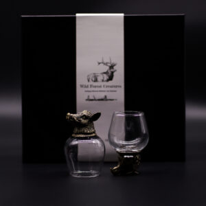 Ta prestižen komplet 100-mililitrskih kozarcev Wild Forest Creatures navduši z izjemnimi detajli in osupljivo izdelavo. Vsak kozarec ima umetelno oblikovano medeninasto podnožje v podobi divjih gozdnih živali – med njimi so medved, orel, jelen, divji prašič, kozorog in drugi značilni gozdni motivi, ki poskrbijo za edinstven vizualni učinek.